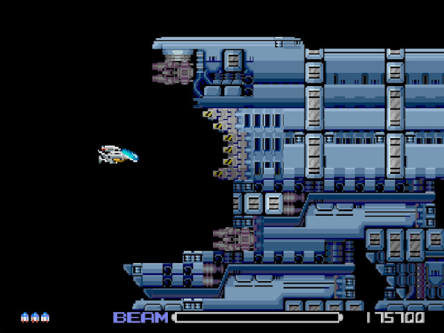 還記得某一天放學,又照慣例在回家前先飄到學校附近常去的遊戲小賣店巡一下田水,看看有沒有什麼新遊戲可以交換。突然間看到櫃檯電視畫面上的影像,天啊!這不是最近在遊藝廳裡頗受歡迎的射擊遊戲嗎?此時老闆輕咳了兩聲,表情略帶驕傲的介紹這款大有來頭的遊戲,這才知道原來遊戲的主機就是傳說中的 PC-Engine 啊。鄉下小地方,資訊來的總是比較慢,其實在同學之間早有耳聞它的威力,如今一看到實體遊戲畫面,更加深了筆者日後無論如何也要想辦法弄到一台 PC-Engine 的信念,而這個遊戲就是鼎鼎大名的「異形戰機 R-TYPE」。